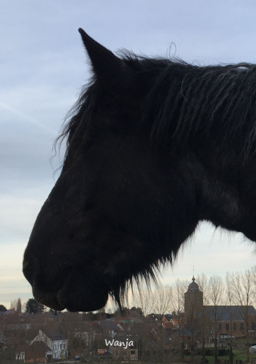 In 2020 werd ons eerste Belgisch trekpaard gekocht Wanja genaamd, een blauwschimmel. Dit paard is geleerd wat wil zeggen dat ze kan ploegen en werken met het intussen verzamelde roerend erfgoed. Ze is een jaartje ouder en doet het op de boerderij rustig aan. maar als het sneeuwt sleept ze gewillig onze slede en bij goed weer trekt zonder morrelen de wagen. Zij is voor de vooruit wat wil zeggen dat ze goed doorwerkt en niet slentert.